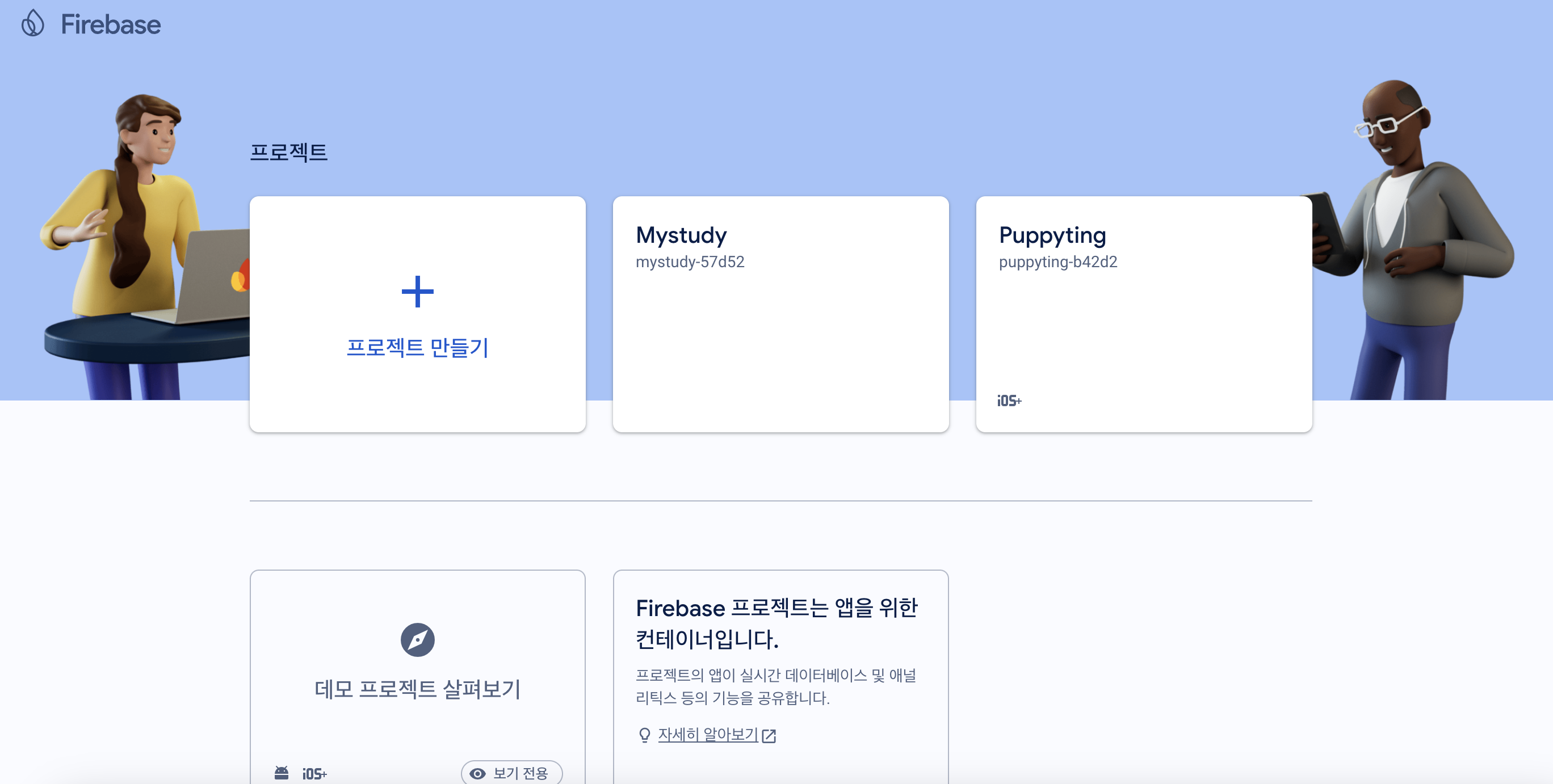 1. 처음 사이트를 가입하고 해당 창에서 프로젝트 만들기를 누름.(나는 공부하려고 만든 Mystudy가 이미 있음)