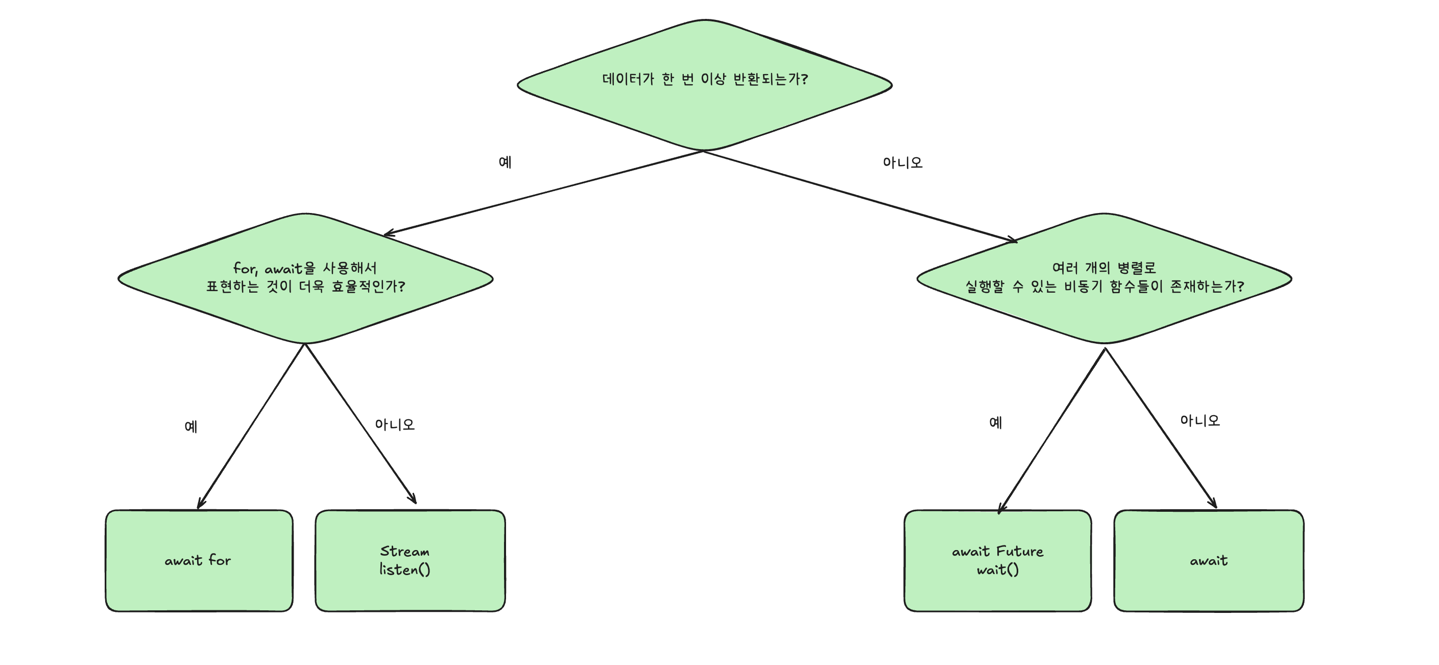 - `Future`, `async`, `await` 키워드를 통해 구현