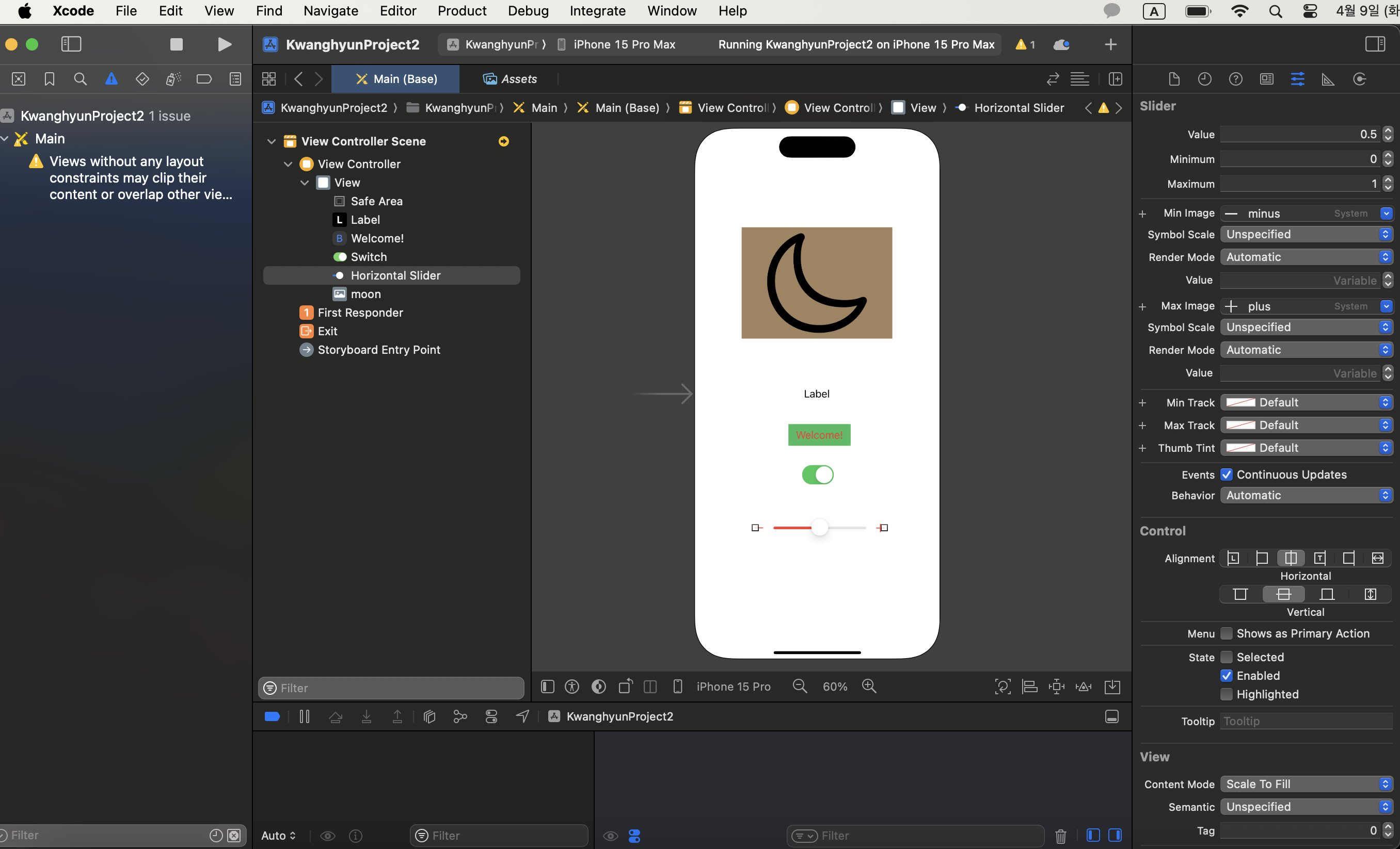 - UIButton, UILabel, UITextfield, UIImageView 등 사용할 수 있는 객체를 Drag & Drop으로 배치하여 앱에서 사용가능