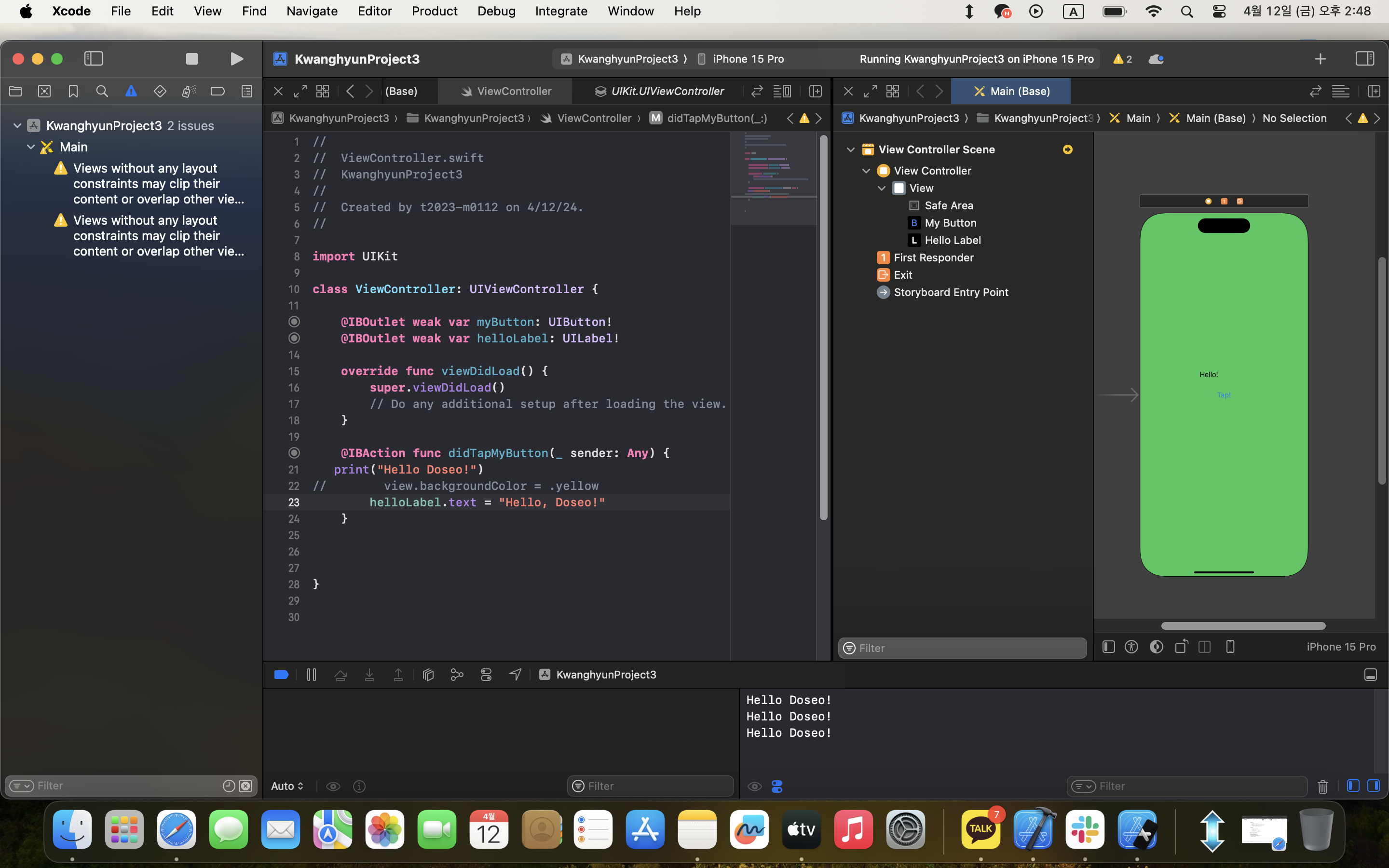 - Storyboard에서 화면과 코드를 연결하는 방법