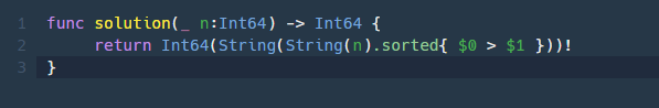 함수 solution은 정수 n을 매개변수로 입력받습니다. n의 각 자릿수를 큰것부터 작은 순으로 정렬한 새로운 정수를 리턴해주세요.